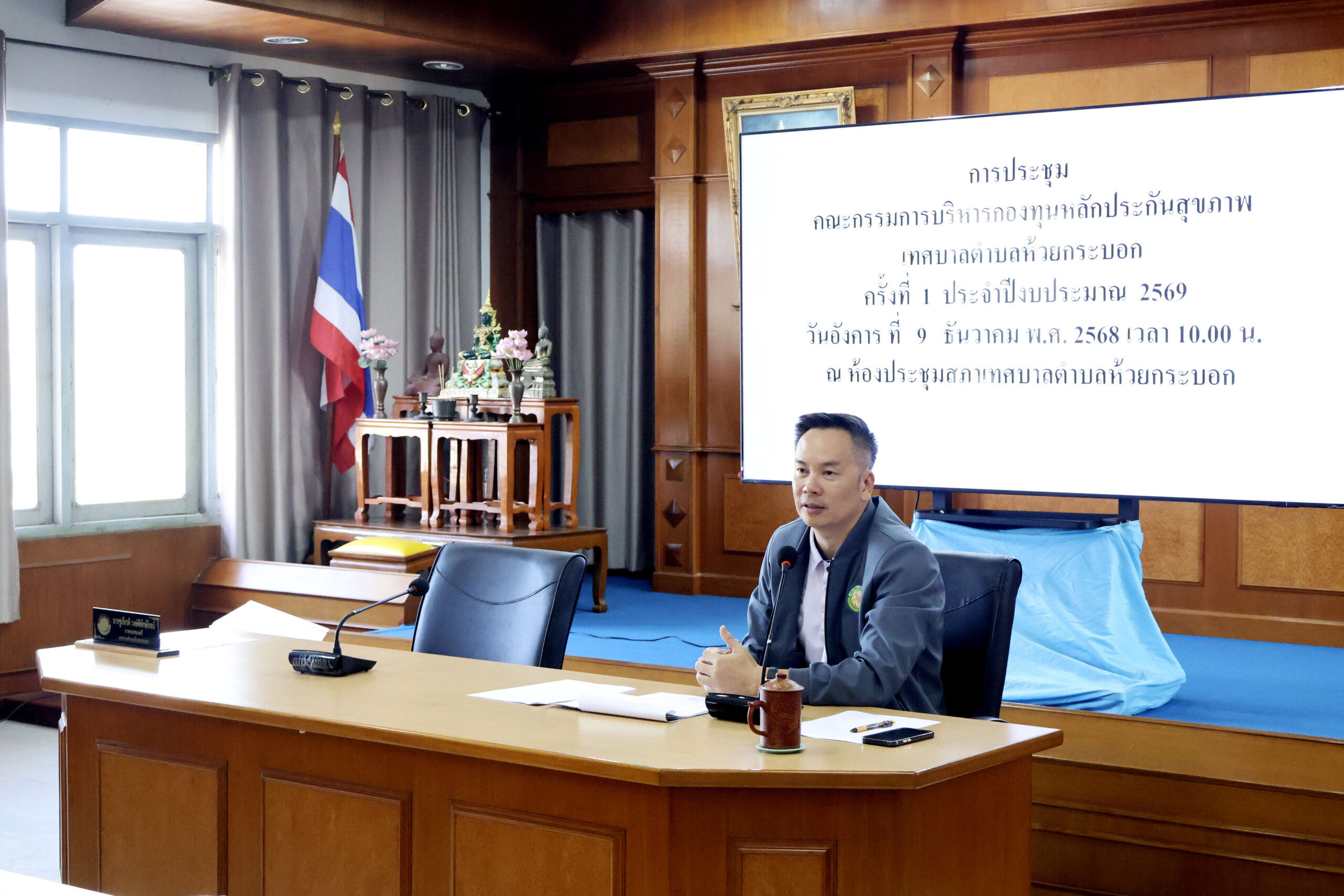 วันอังคารที่ 9 ธันวาคม 2568 เวลา 10.00 น. นายชูเกียรติ วงษ์พิทักษ์โรจน์ นายกเทศมนตรีตำบลห้วยกระบอก เป็นประธานในการประชุมคณะกรรมการกองทุนหลักประกันสุขภาพเทศบาลตำบลห้วยกระบอก ครั้งที่ 1 ประจำปี 2569 ณ ห้องประชุมสภาเทศบาลตําบลห้วยกระบอก